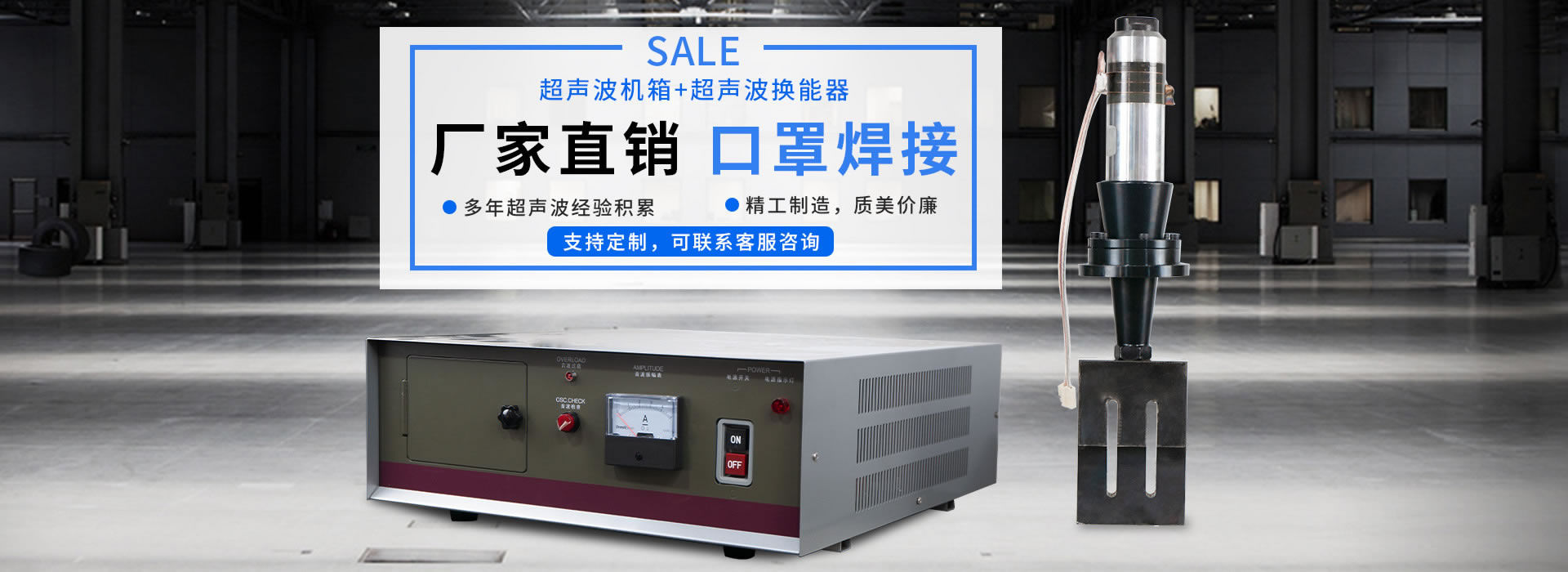 我們一直專注于超聲波焊接機,超聲波換能器,超聲波金屬焊接設備,超聲波模具;致力于各種自動化,智能化高精密度的超聲波設備研發,全面發展各種熔接技術及超聲波非標設備